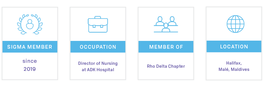 Always motivated and dedicated to leading the development of solutions to assist vulnerable and underprivileged community members, Mariyam Huda learned about volunteer opportunities through the Sigma website and there was no second thought about it. She has found that there is no single learning with Sigma. “You learn every day, and you learn something new and wonderful about nursing and nurses across the world as many times as you log in, and that's the beauty of being part of Sigma.”