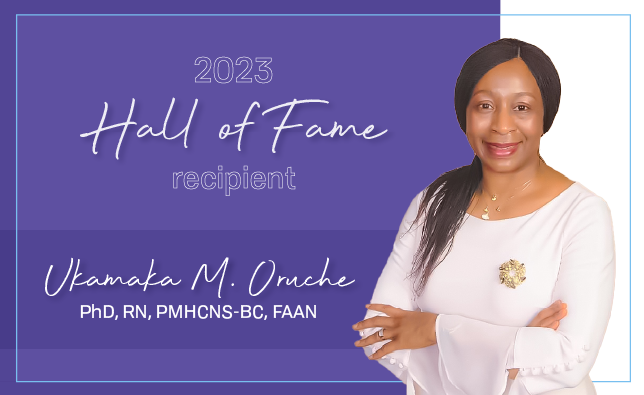 Ukamaka M. Oruche, PhD, RN, PMHCNS-BC, FAAN, is the Gordon Keller Professor, Senior Associate Dean of Research, and the Director of the PhD program at the University of South Florida. She is a member of Sigma’s Alpha Chapter.