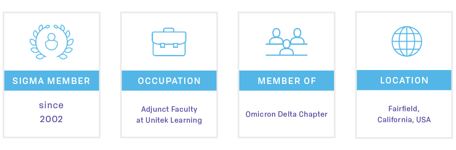 Holly has been volunteering since 2017 and has served in a variety of roles, including as a Research Facilitator and a Mentor in Sigma’s inaugural Mentoring Cohort, as well as Zeta Phi Chapter President and Governance Committee Member. She looks at her many volunteer opportunities as positive experiences due to the support and training of Sigma staff, her chapter board members, and other Sigma volunteers. “Success takes teamwork,” Holly says.