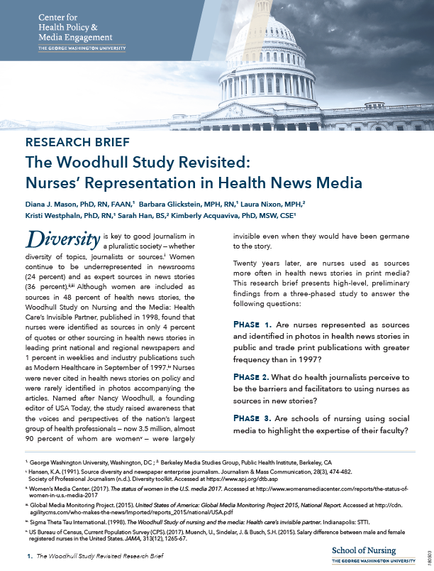 According to the preliminary report, “In 1997, nurses appeared as sources in 4 percent of daily newspaper articles and in 1 percent of articles in weekly and industry publications. In 2017 nurses were quoted in 2 percent of newspaper articles and in 1 percent of articles in weekly and industry publications.”