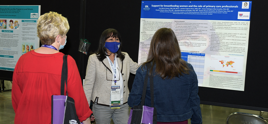 Poster Sessions | Over 100 nurse researchers showcased their scientific findings in the Exhibit Hall, with more than 150 joining virtually. During viewing hours throughout the conference, attendees stopped by the posters to network and chat with presenters about their ongoing research.