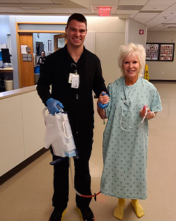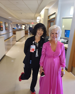 While packing for the hospital, I wanted to feel as much like myself as possible, so I included my favorite hot pink pajamas. Shunan, the nurse assigned to me, spotted these and, with glee and excitement, asked, "Do you want to put them on?" With so many tubes and wires coming out of my body, I couldn't even entertain the idea of that. Every day, with the same level of excitement, Shunan would ask the same question, and my answer was always the same: "Not today." One day, I finally pushed the call button and asked them to tell Shunan I was ready to wear the gown. The door flung open, and there was Shunan, in all her excitement, asking, "REALLY?" Once on, Shunan paraded me around the nurse's station, saying, "Look at my patient. Isn't she pretty?" At that moment, I felt cared for and valued, not as a patient, but as a human being. Shunan gave me the gift of feeling like myself again.